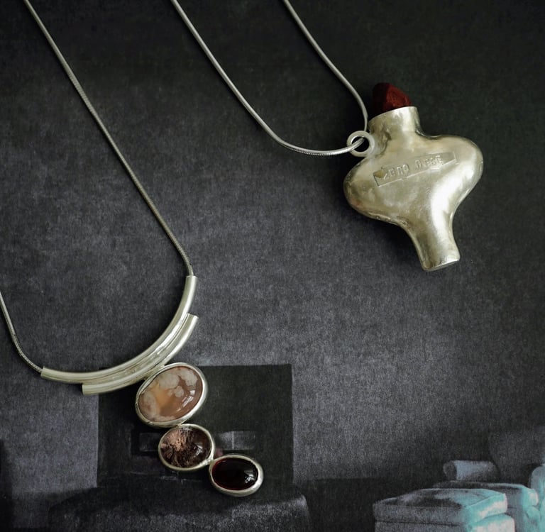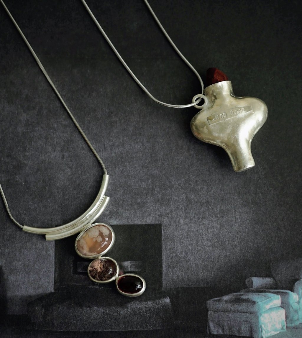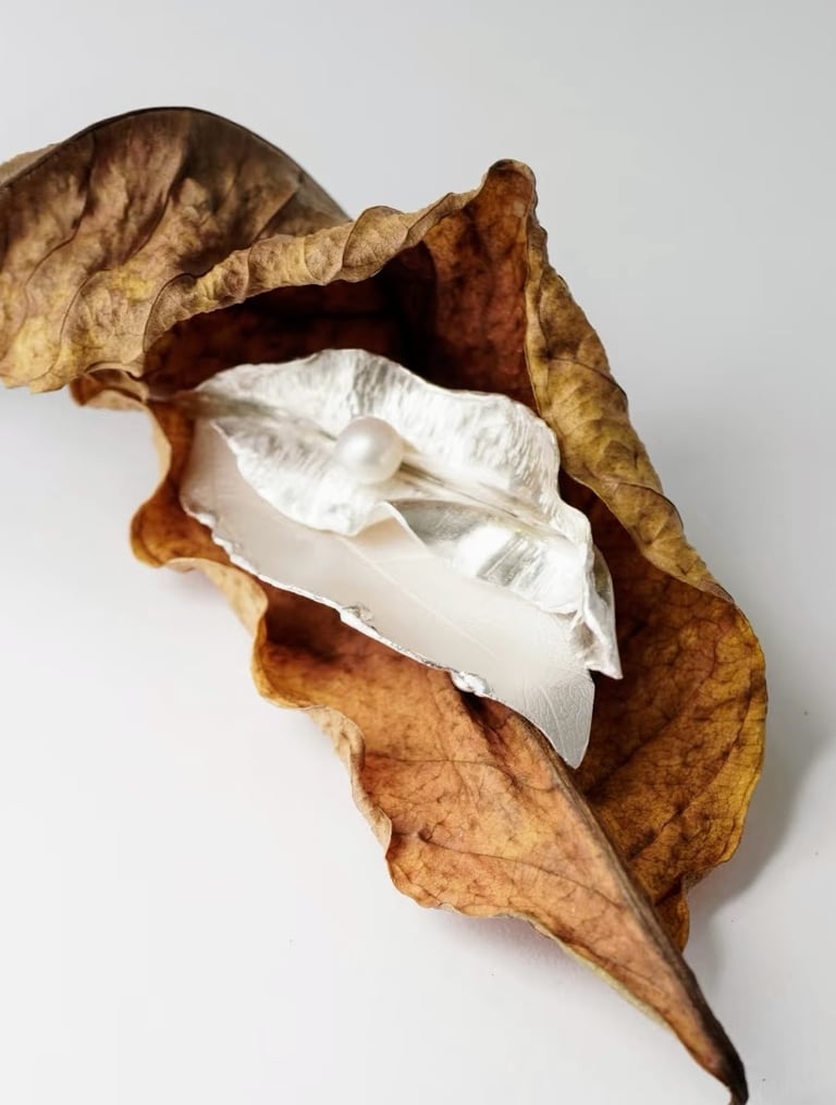 Works with silver and semi-precious gemstones. Inspired by nature, in particular plants.