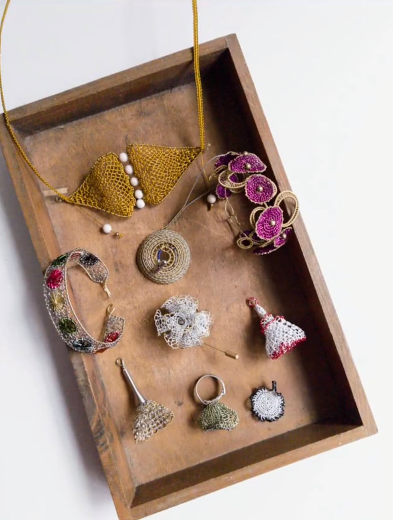 Specialises in metal winding and metal weaving. Inspired by nature, in particular plants.
